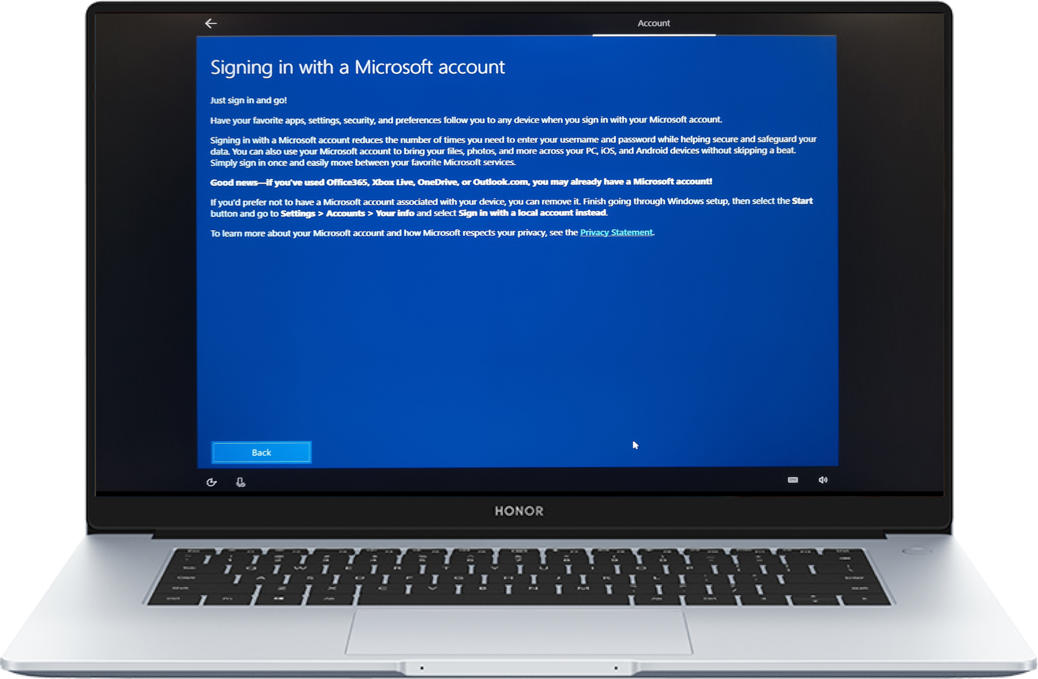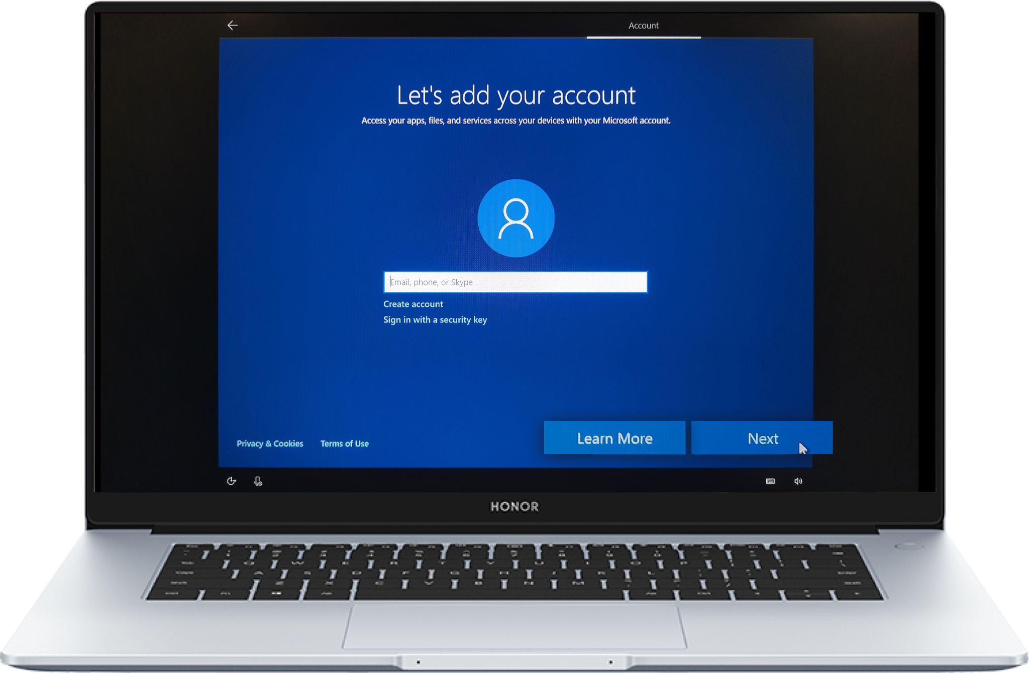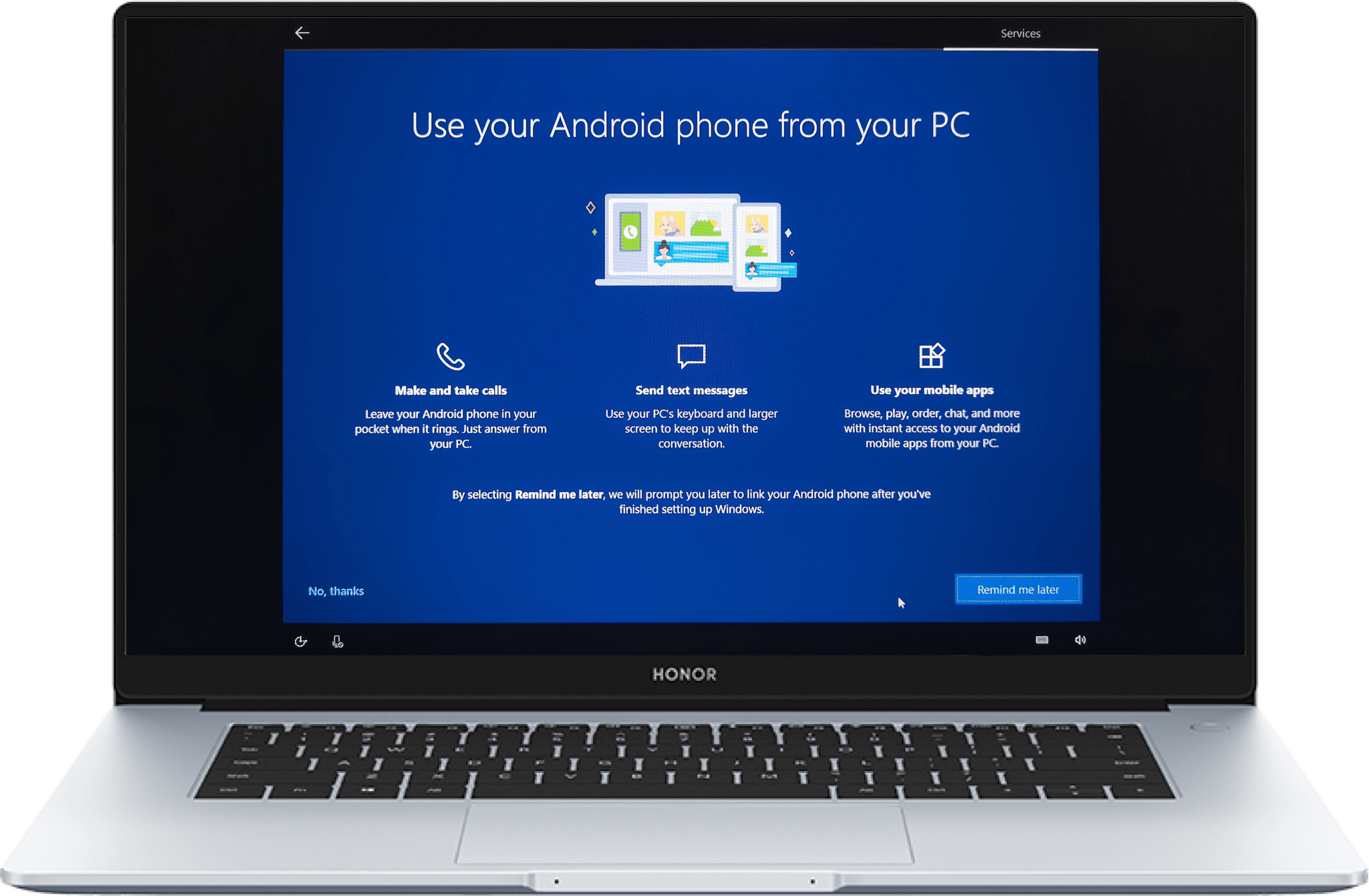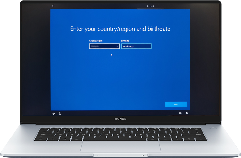 يمكنك تخطي بعض العمليات وفقا لرغبتك. سوف يكون حاسوب أونور المحمول الخاص بك جاهزا للعمل بعد