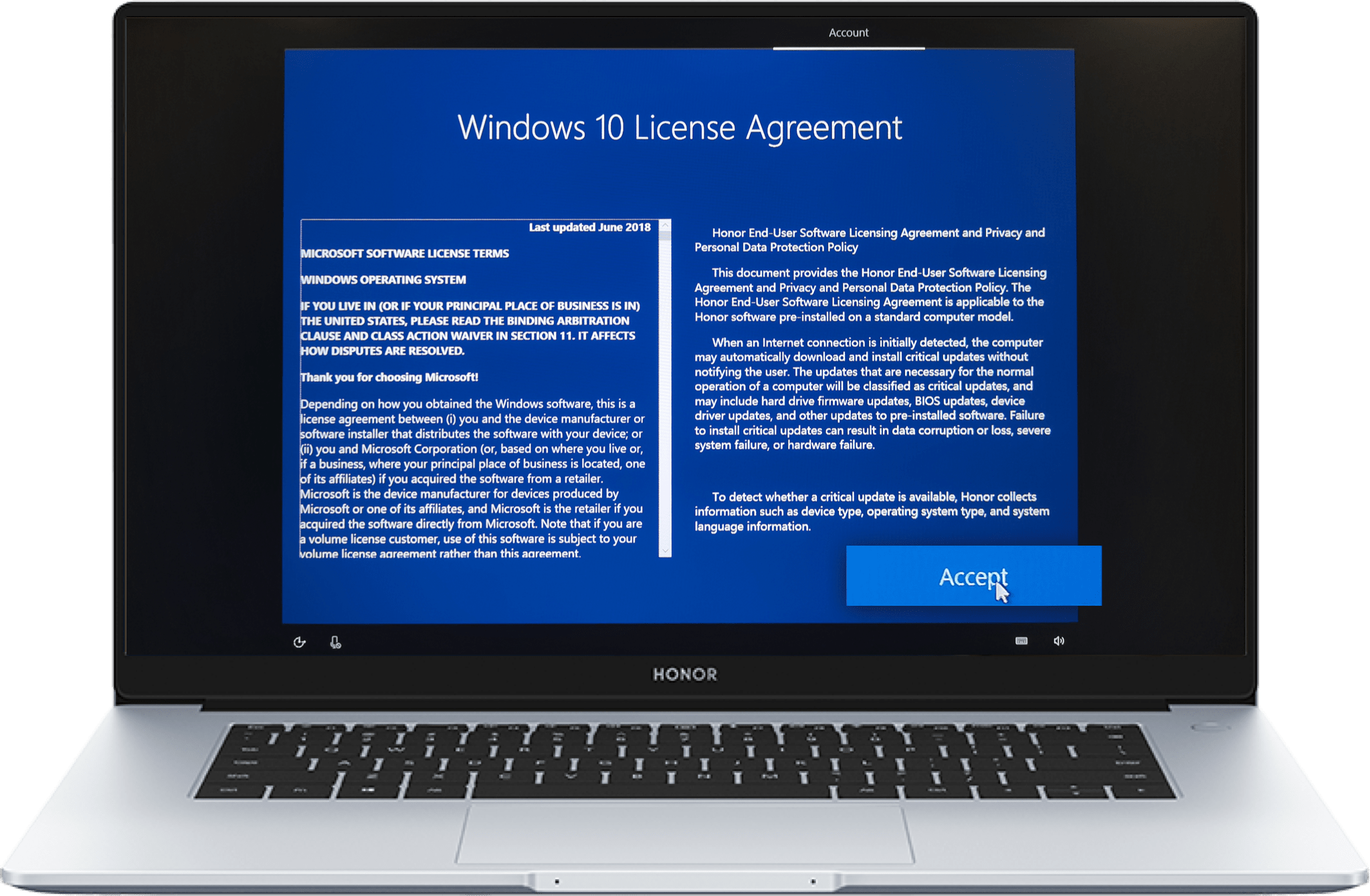 3. اقرأ اتفاقية ترخيص ويندوز 10 بعناية ثم انقر فوق قبول في حالة موافقتك عليها؛