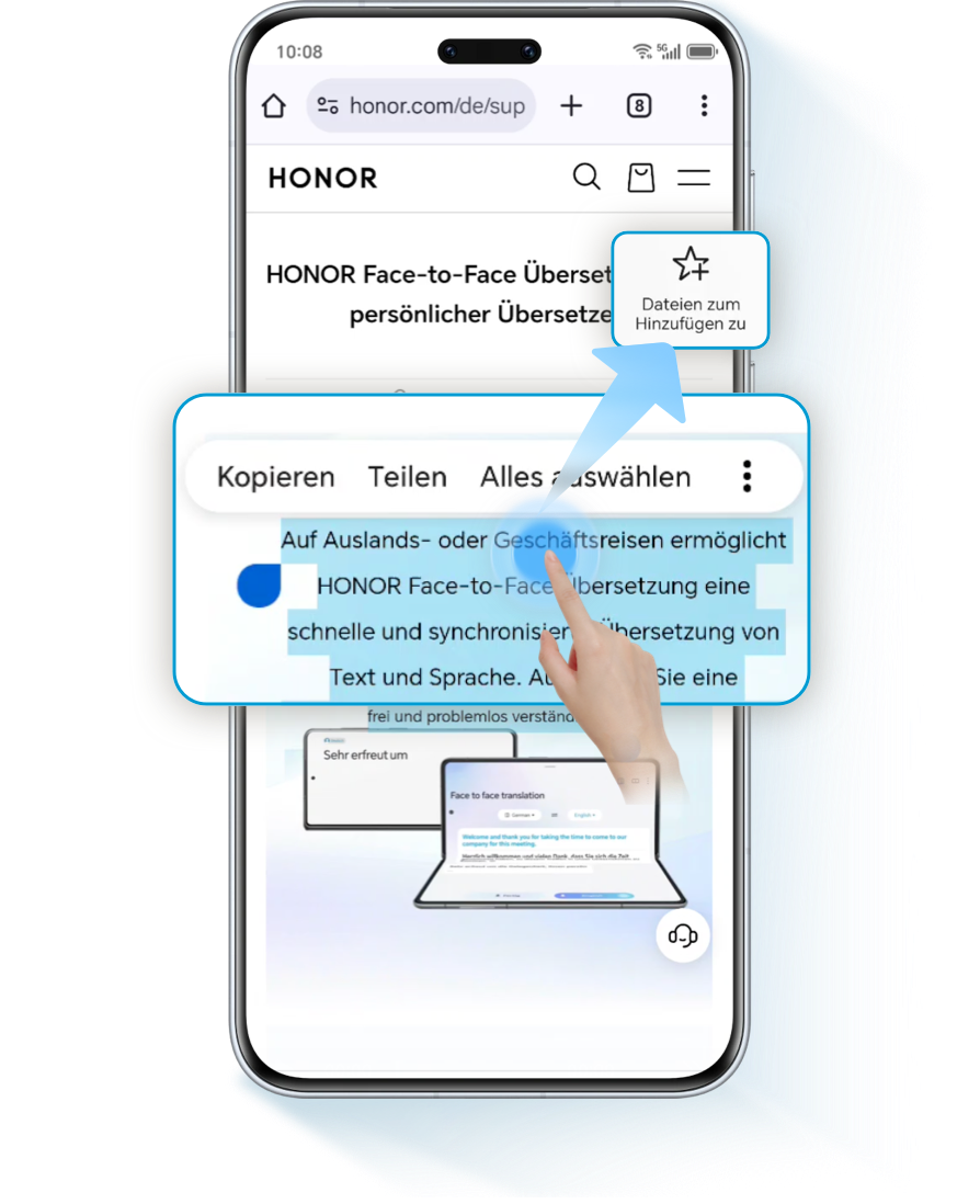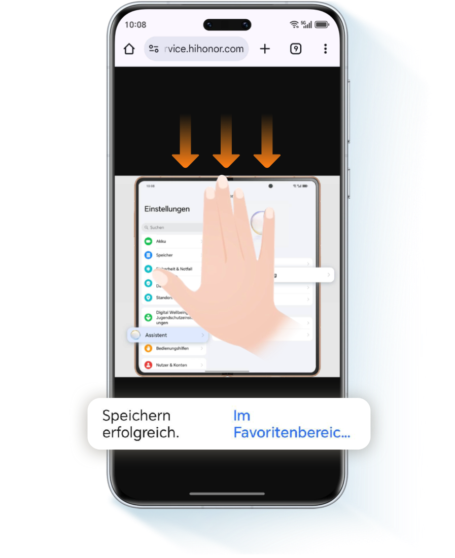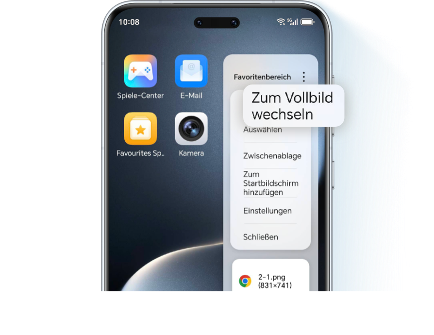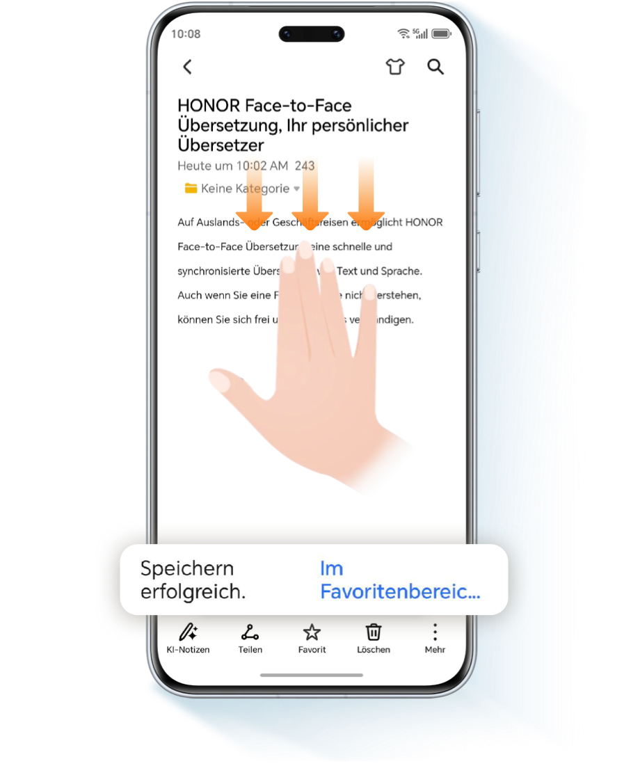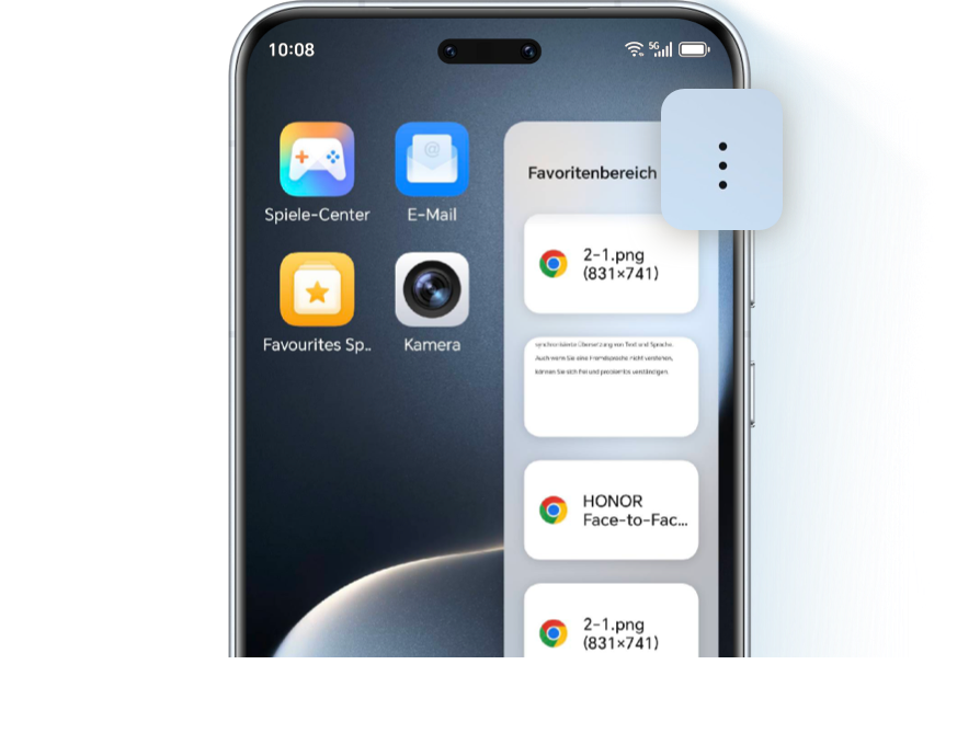 Streichen Sie vom Bildschirmrand, um den Favoritenbereich zu öffnen, tippen