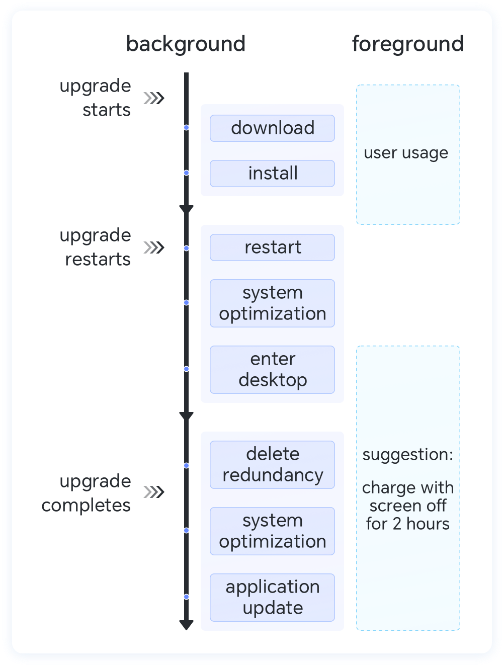 During the upgrade process, the system needs to perform a large amount of data processing and optimization work, as shown in the following diagram: