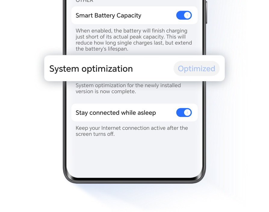 Through continuous technological improvements and innovations, we aim to make the backend optimization and learning process more transparent; we are committed to ensuring that phones maintain high performance while reducing power consumption and extending battery life.