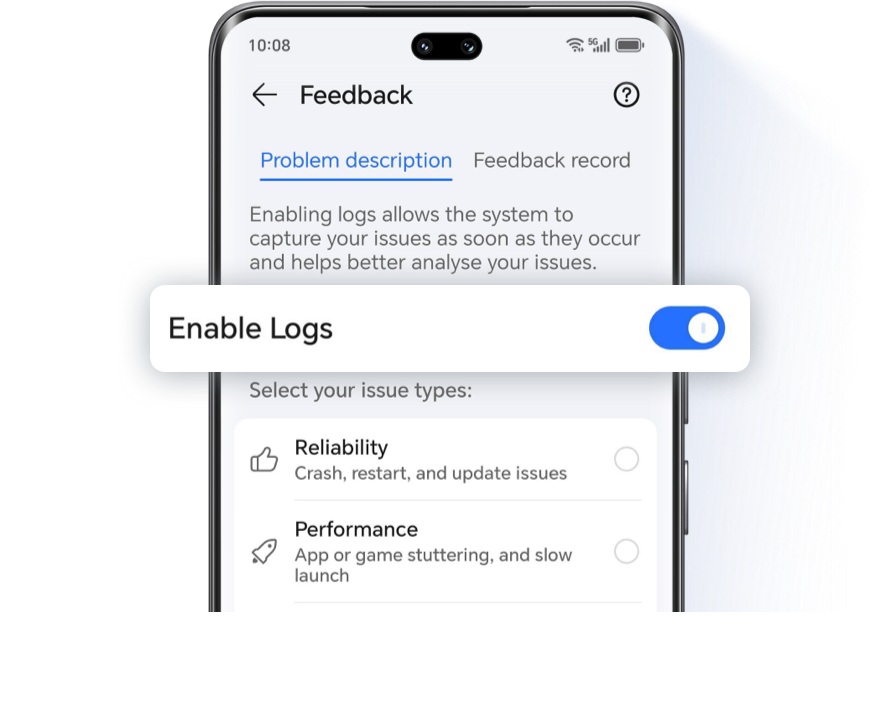 My HONOR App - Services - Smart Diagnose - Top Right Corner - Feedback (Enable logs, select category)