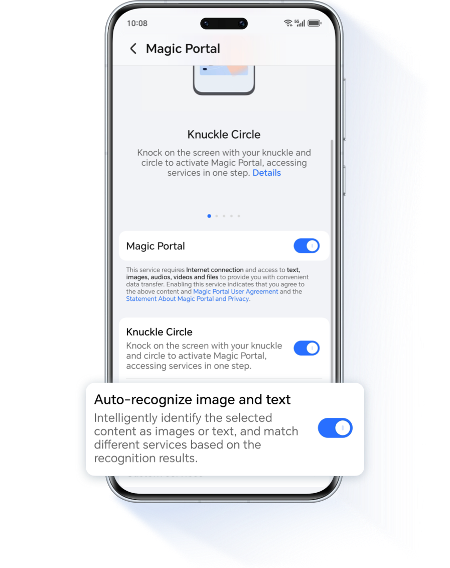 Go to Settings > HONOR AI > Magic Portal, and turn on the Auto-recognize image and