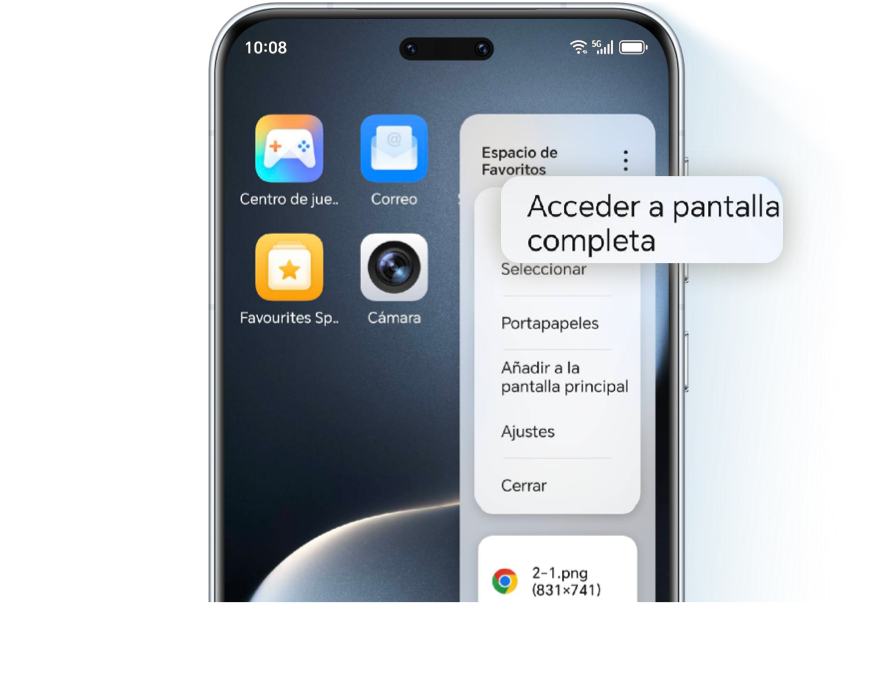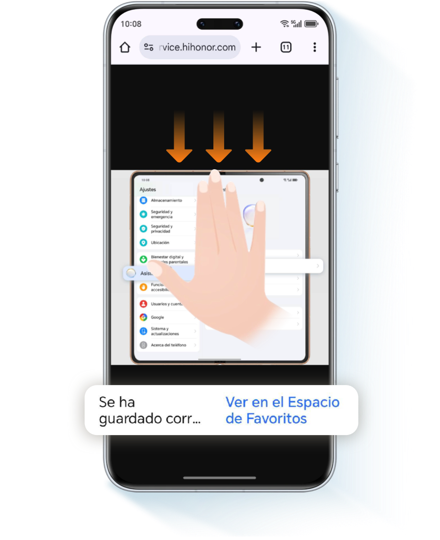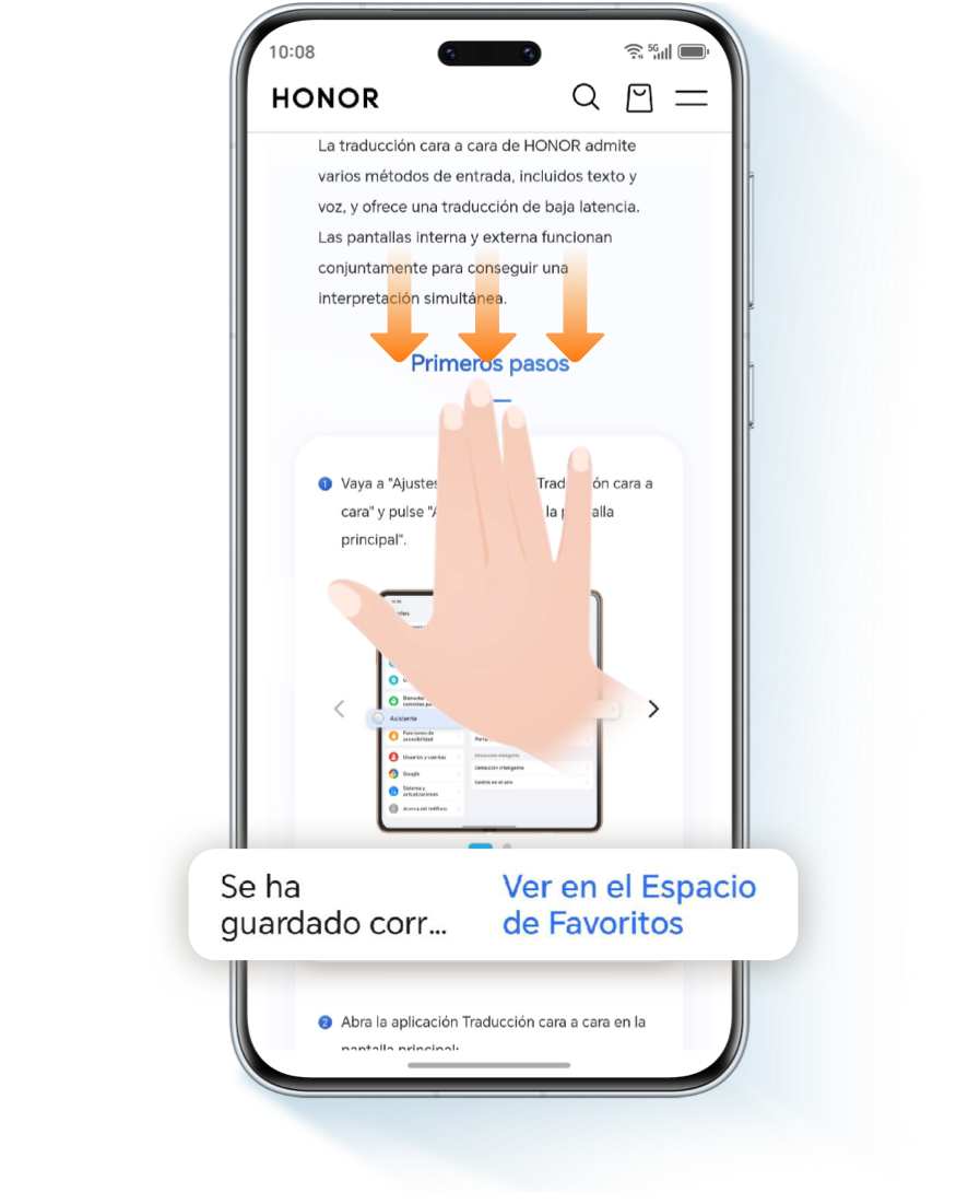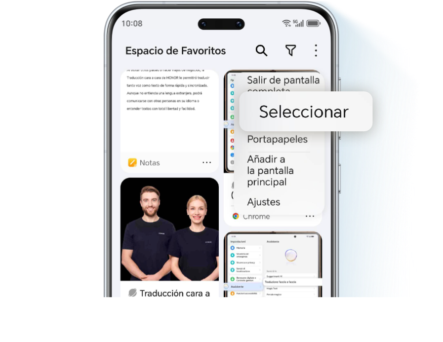 Desliza el dedo desde el borde de la pantalla para abrir tu Espacio de Favoritos, pulsa