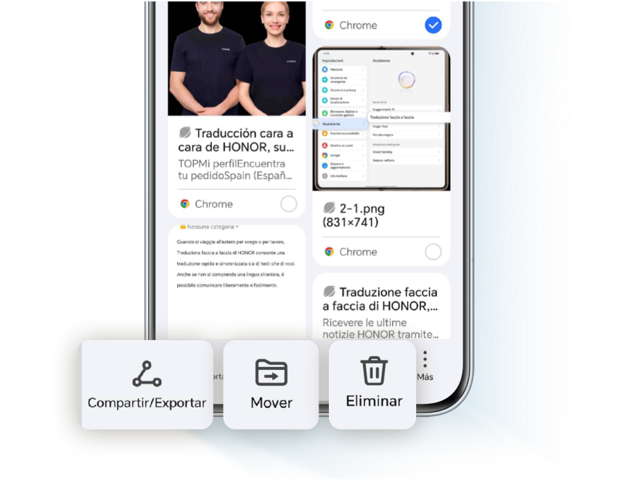 Selecciona varios elementos para compartirlos a través de la nube, exportarlos localmente o moverlos