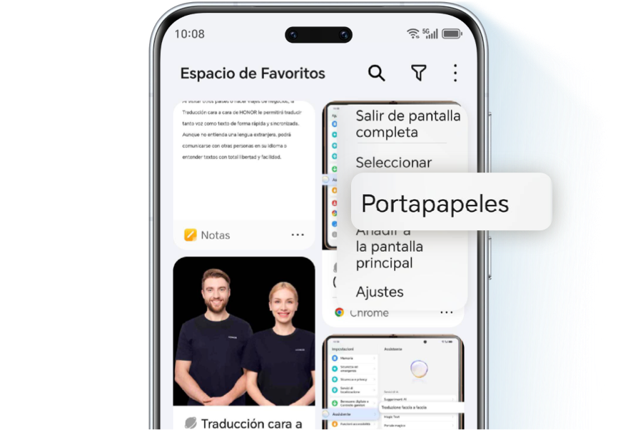 El Espacio de Favoritos guarda automáticamente los últimos 30 días del historial de texto copiado, lo