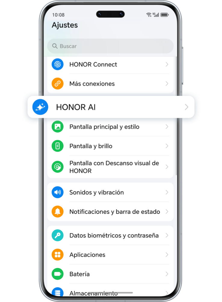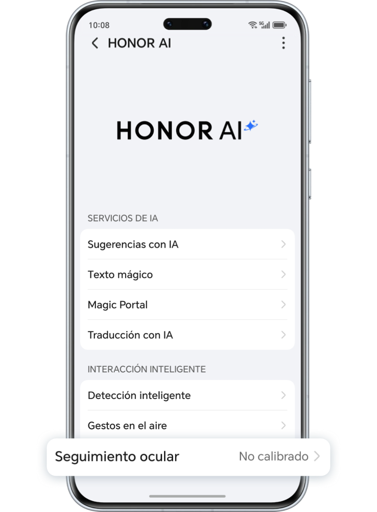 Ve a Ajustes > HONOR AI, pulsa Seguimiento ocular para revisar mensajes de un