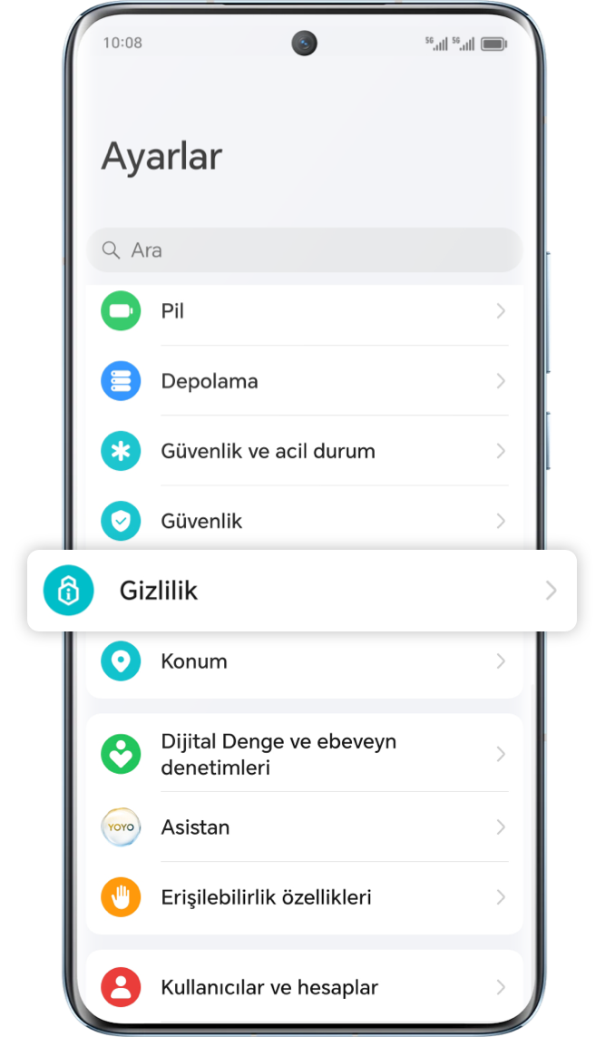 Ayarlar > Gizlilik >