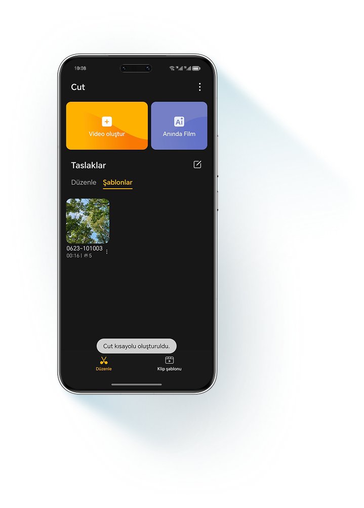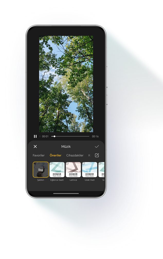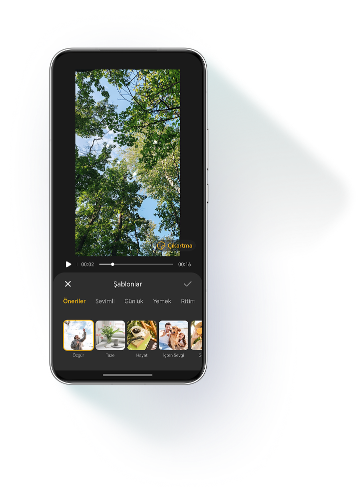 şablon seçer, müzik ekler ve videoyu düzenler. Size sadece
