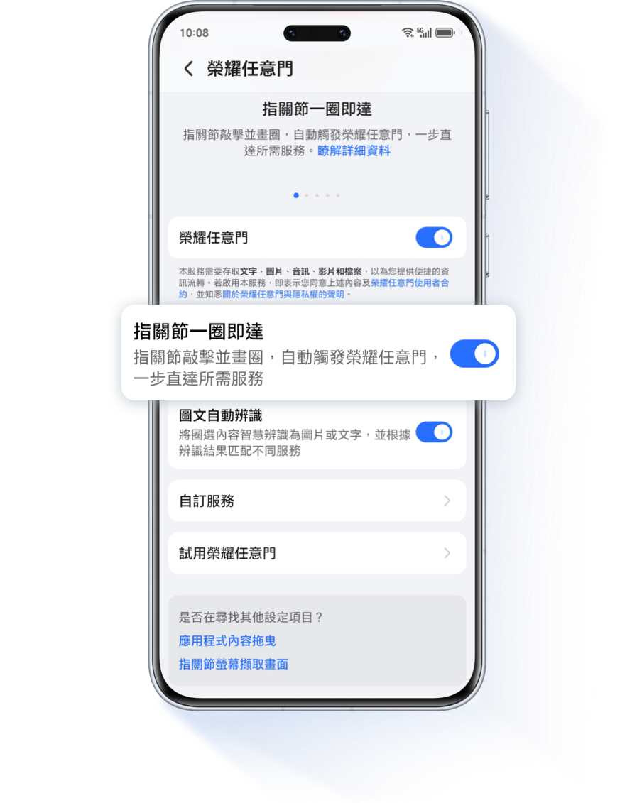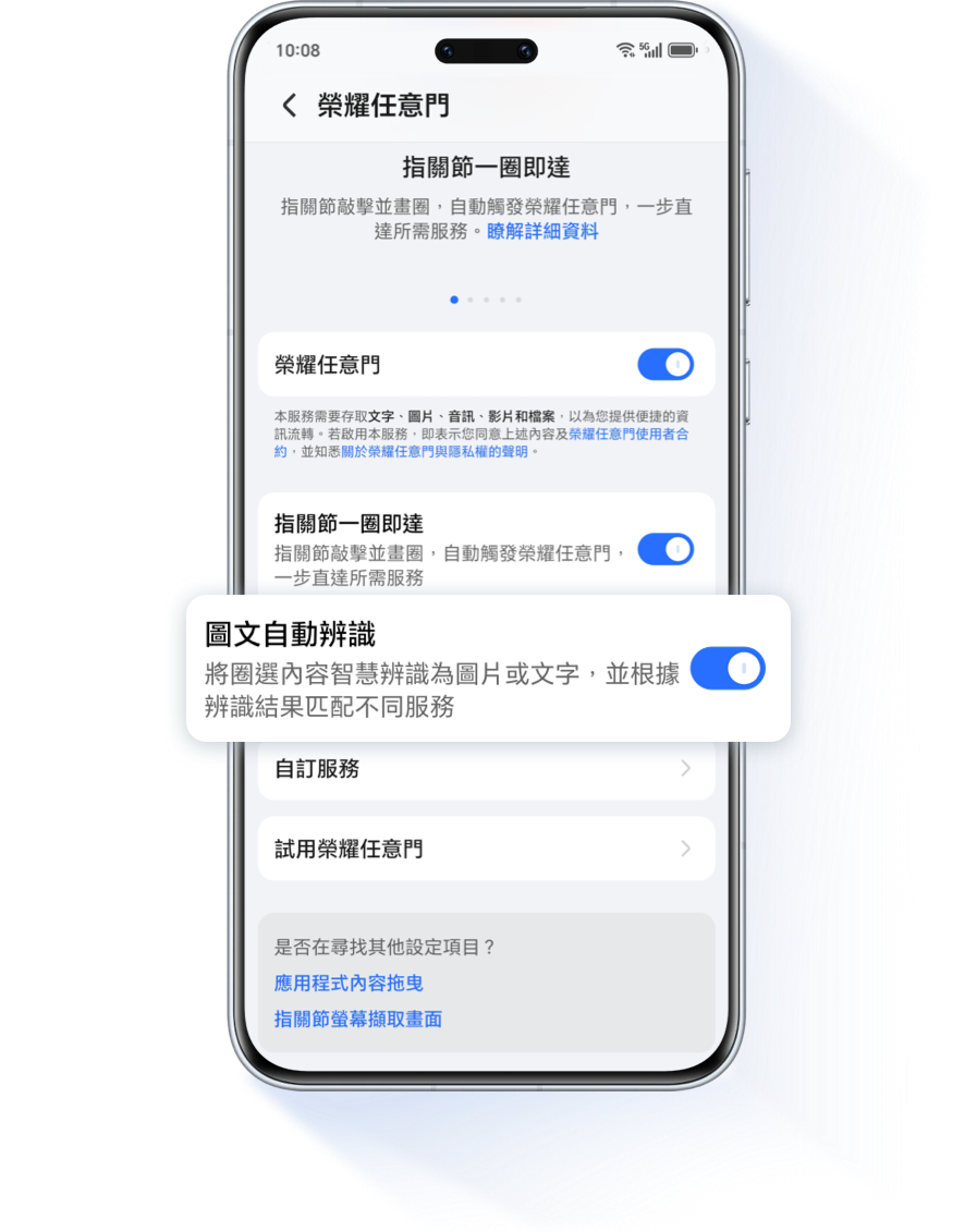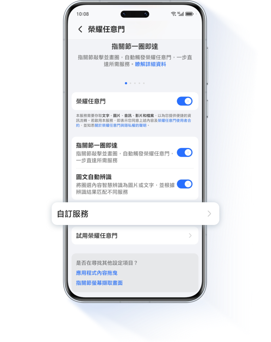 設定 > 榮耀AI > 榮耀任意門 > 自訂服務